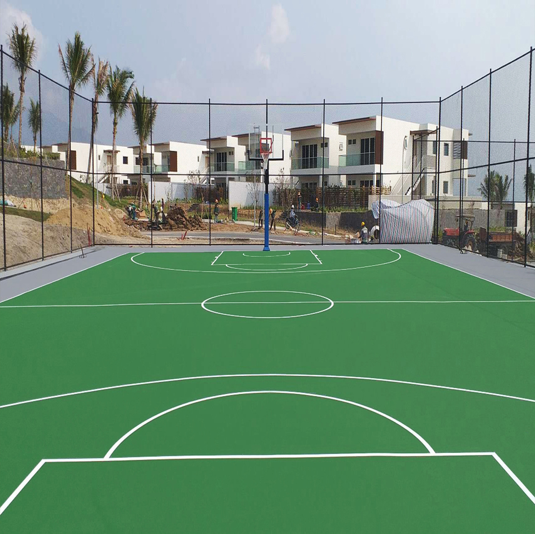 Làm sân bóng rổ với 9 lớp sơn có HẠT Cao Su như sân US OPEN Chống Nứt Polyurethane thường được áp dụng cho nền nhựa. Xây dựng sân bóng rổ với nền nhựa với 9 lớp sơn là chuẩn nhất hiện nay, được nhiều trường học quốc tế lựa chọn.